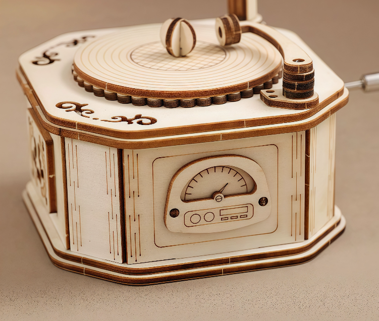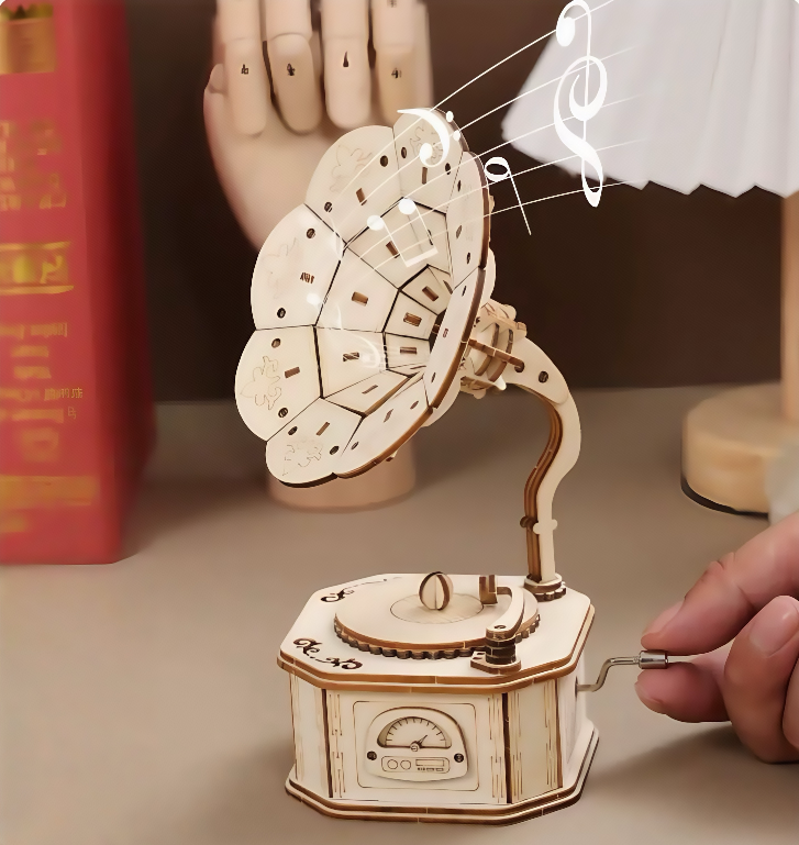 The Hand-Crank Gramophone puzzle captures nostalgic charm and hands-on creativity. With 62 laser-cut wood pieces, it offers a smooth and enjoyable assembly experience, ideal for beginners or a relaxing project. Once completed, it doubles as a captivating decor item with mechanical flair.