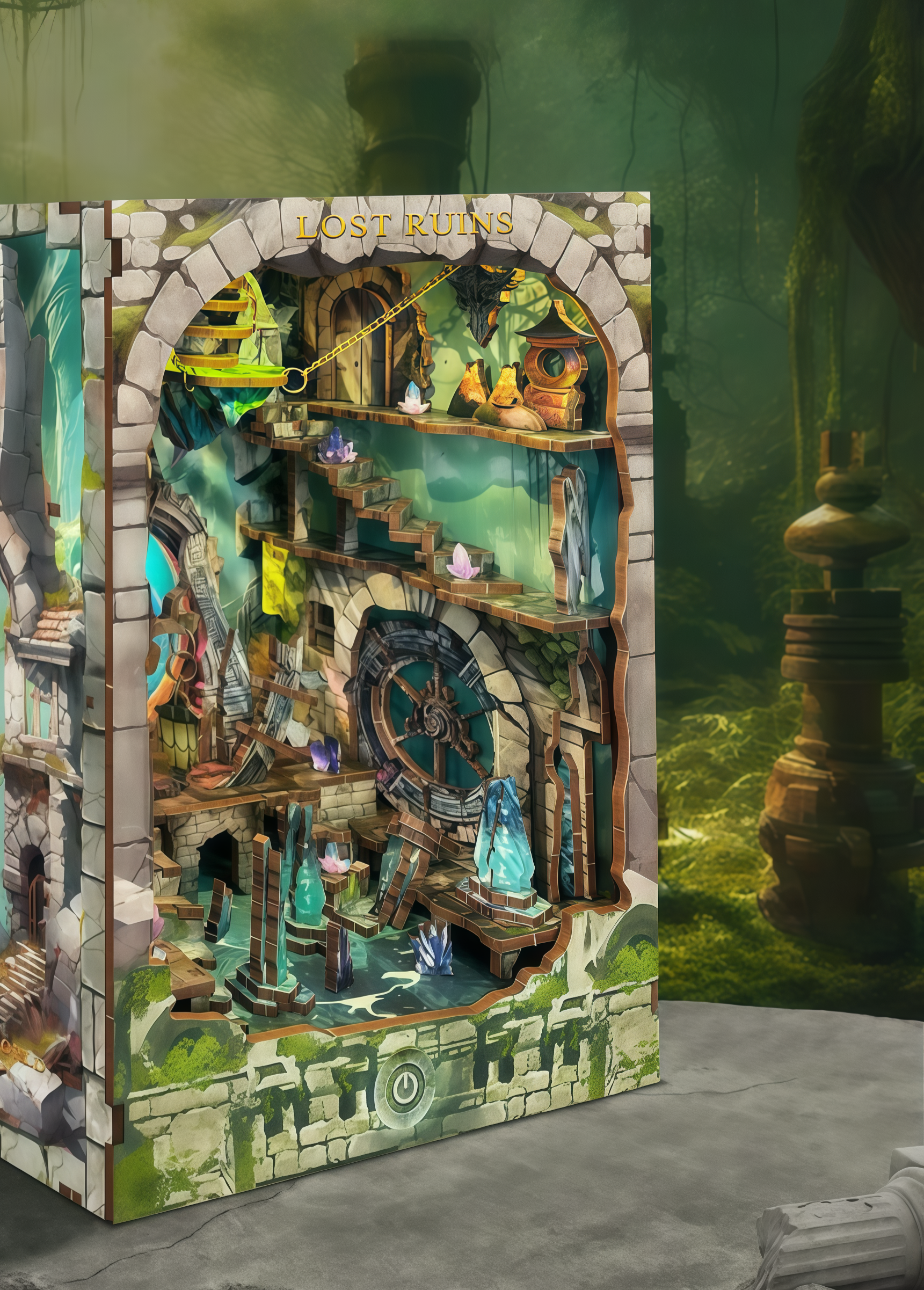The Lost Ruins bookend is a wooden puzzle artwork imbued with mystery and classical beauty. Composed of 231 wooden pieces assembled in layers, it vividly recreates the grandeur and weathered charm of ancient ruins. Functioning both as a bookend and a unique home décor piece, it adds a special touch to any space. Ideal for history buffs and fans of intricate craftsmanship.