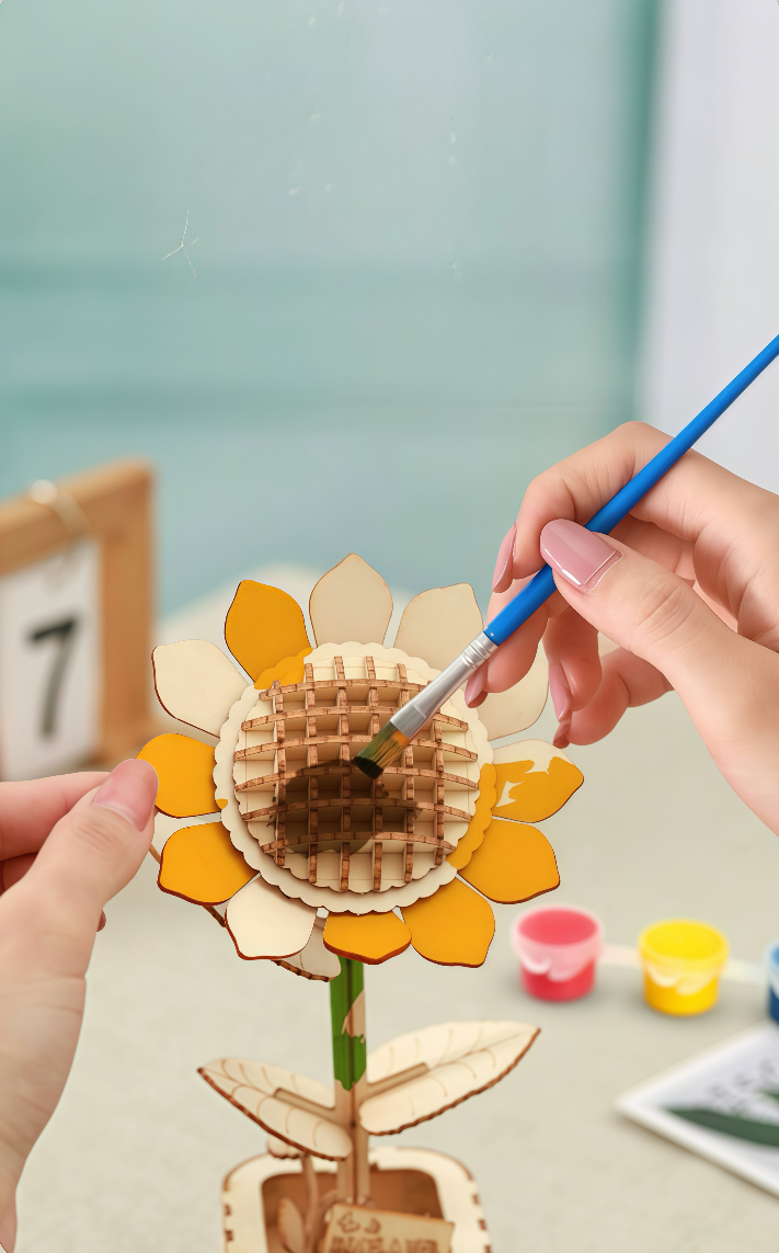 Symbolizing warmth and optimism, the WoodooX Sunflower Puzzle brings sunshine into your hands. Whether you opt for the pre-colored version or the DIY paint edition, this 3D wooden model offers a creative and meaningful experience—ideal for gifting, crafting, or simply brightening up your space.