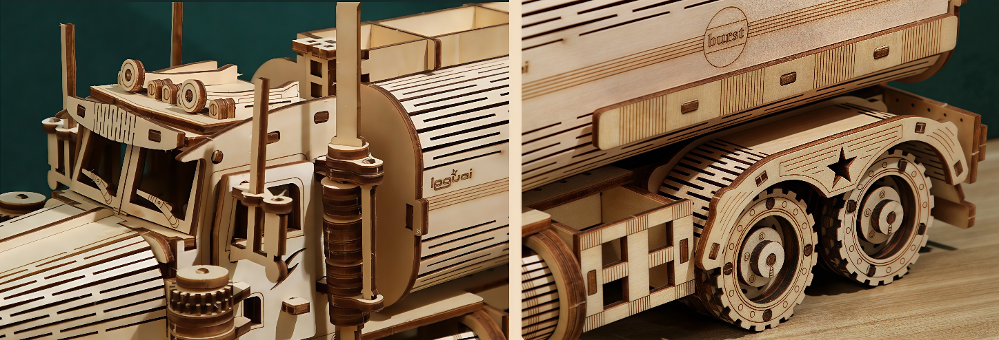 The WoodooX Oil Tanker 3D Wooden Puzzle is a highly detailed industrial-themed model. From the rounded tank body to the mechanical components of the undercarriage, every part is precisely laser-cut from eco-friendly wood. This engaging build enhances hands-on skills and offers valuable insight into mechanical design—making it an ideal gift for engineering fans and adult puzzle lovers.