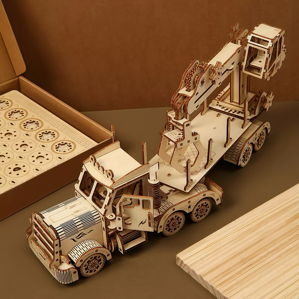 The WoodooX Truck Crane 3D Wooden Puzzle combines the rugged charm of construction vehicles with smart structural design, offering an educational and entertaining hands-on experience. The manually operable crane simulates real lifting actions, adding interactivity. Crafted from high-quality, eco-friendly wood, this 428-piece model makes an excellent gift or display piece, showcasing both mechanical beauty and craftsmanship.