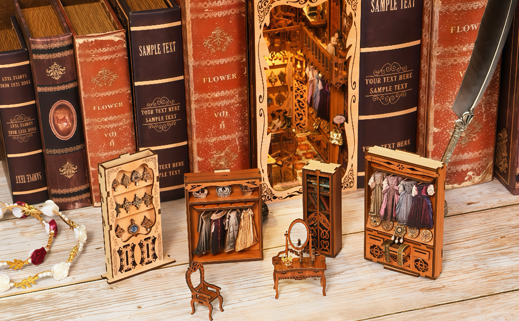 The Duchess’s Wardrobe is more than just a beautiful wooden puzzle bookend—it’s a piece of art exuding regal charm. With 241 wooden parts, it meticulously recreates every detail of a vintage wardrobe. Functional and decorative, the finished piece keeps books in place while adding a touch of elegance to any room. Whether as a thoughtful gift or a personal treasure, it reflects a love for refined living.