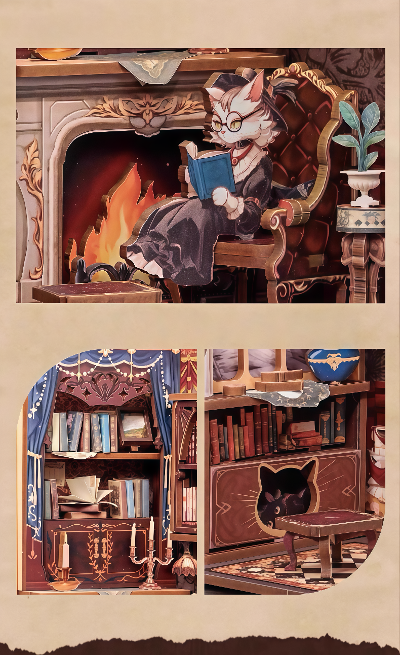 “Cat Earl’s Study” perfectly combines the noble elegance of a cat with the scholarly atmosphere of a vintage study. Whether displayed on a bookshelf or given as a thoughtful gift, it radiates sophisticated taste and unique charm. The enjoyable assembly process further sparks creativity and satisfaction.