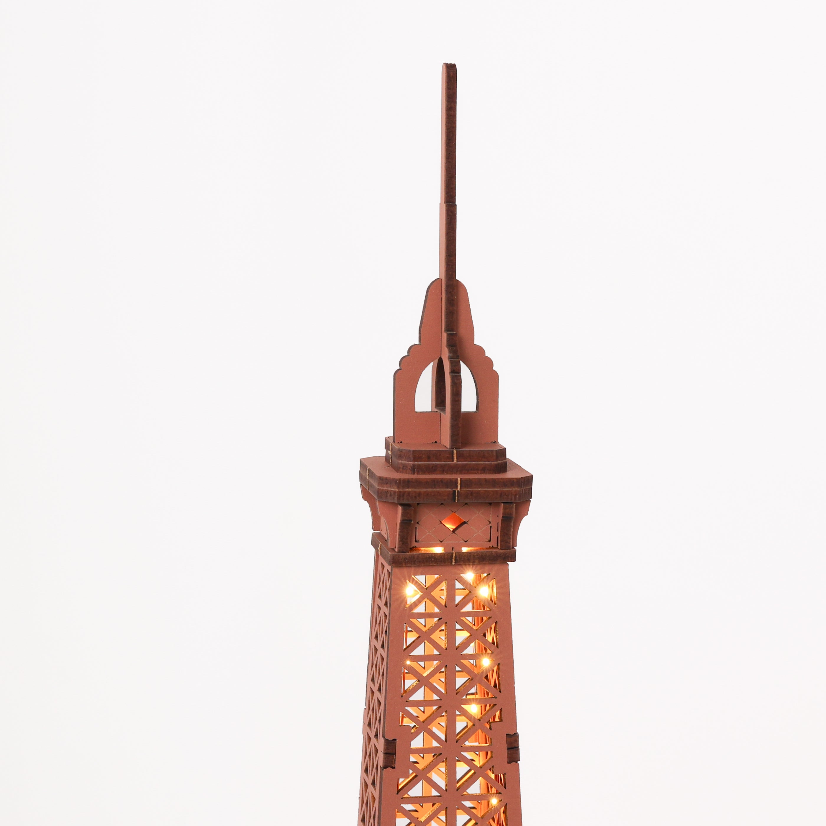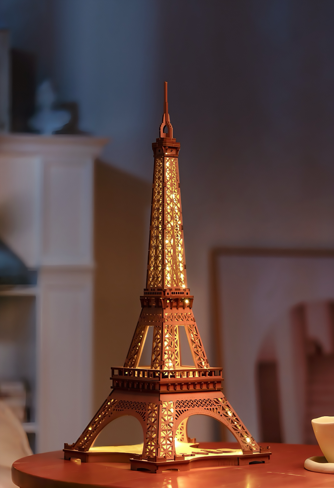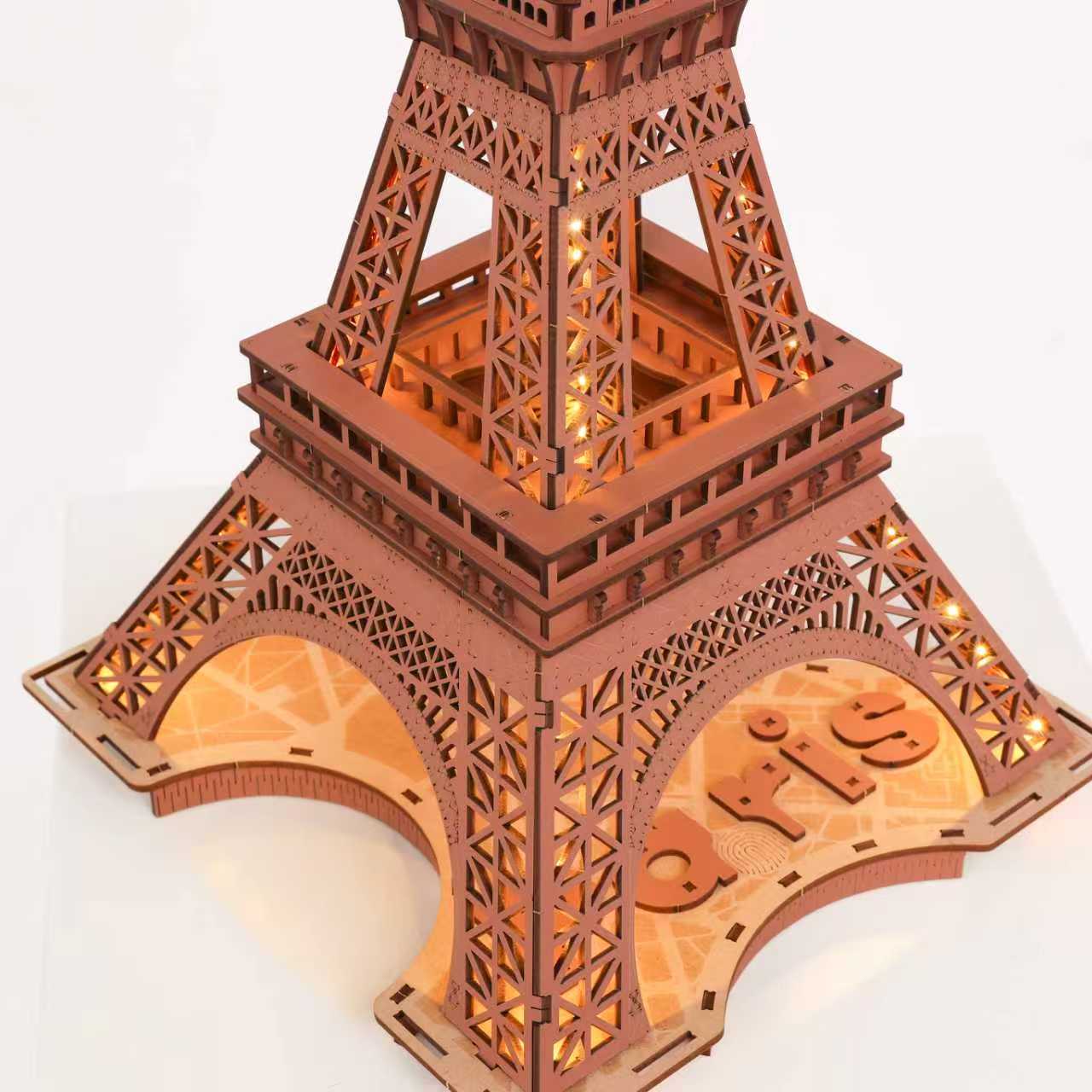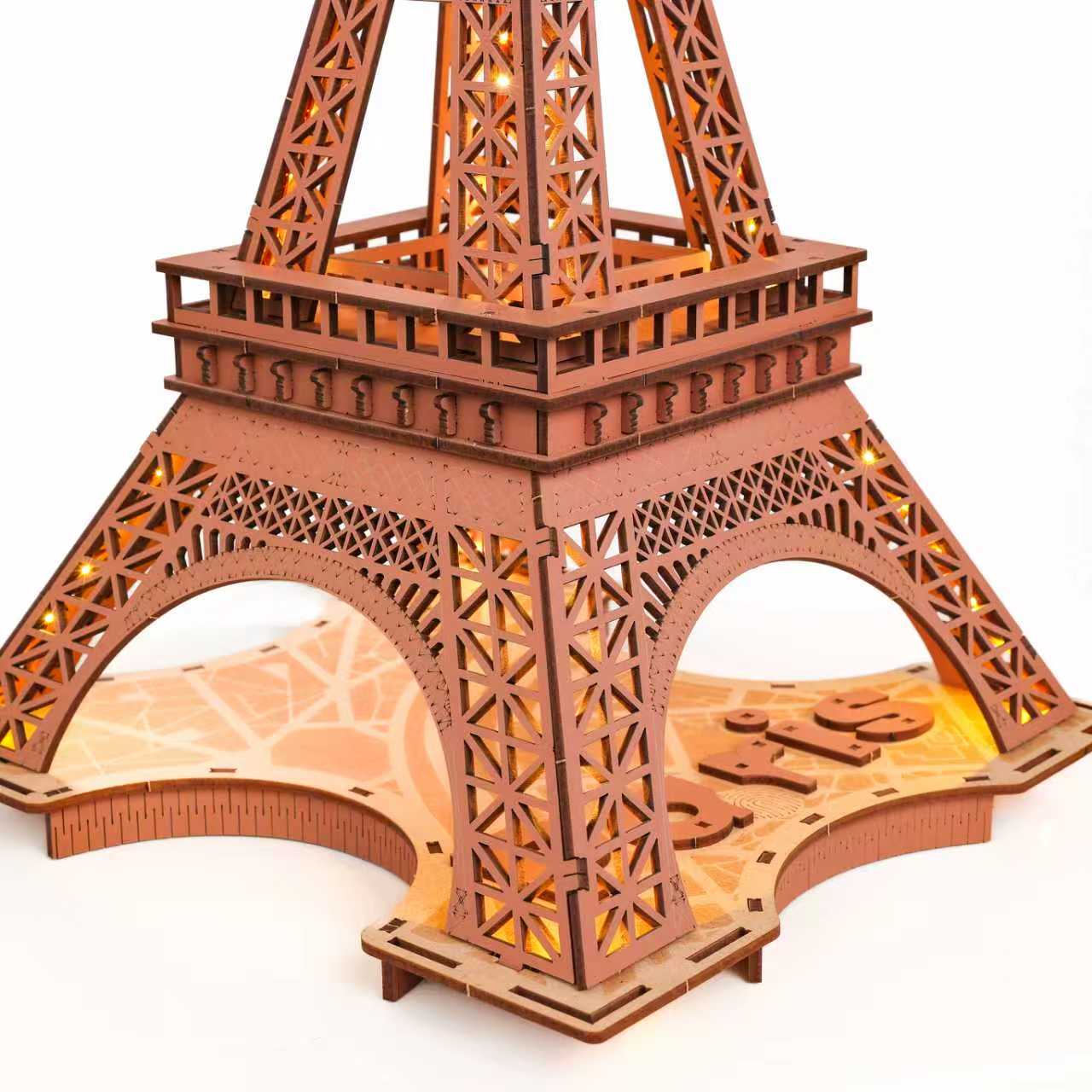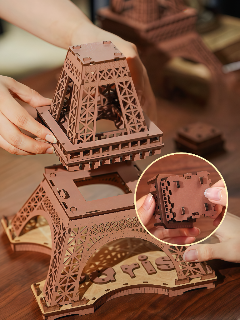 The “Eiffel Tower” 3D Wooden Puzzle Diorama captures the elegance of Paris’s iconic landmark in a wooden architectural model. Designed with a built-in LED system and modern Type-C power connection, it transforms into a luminous display that celebrates both craftsmanship and romance.