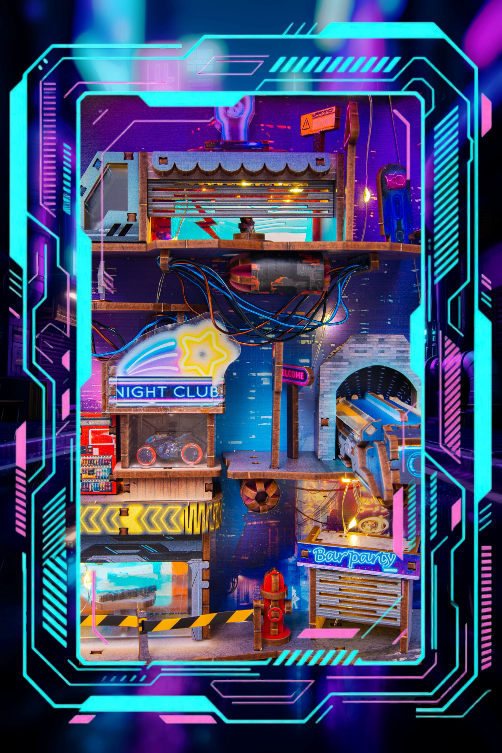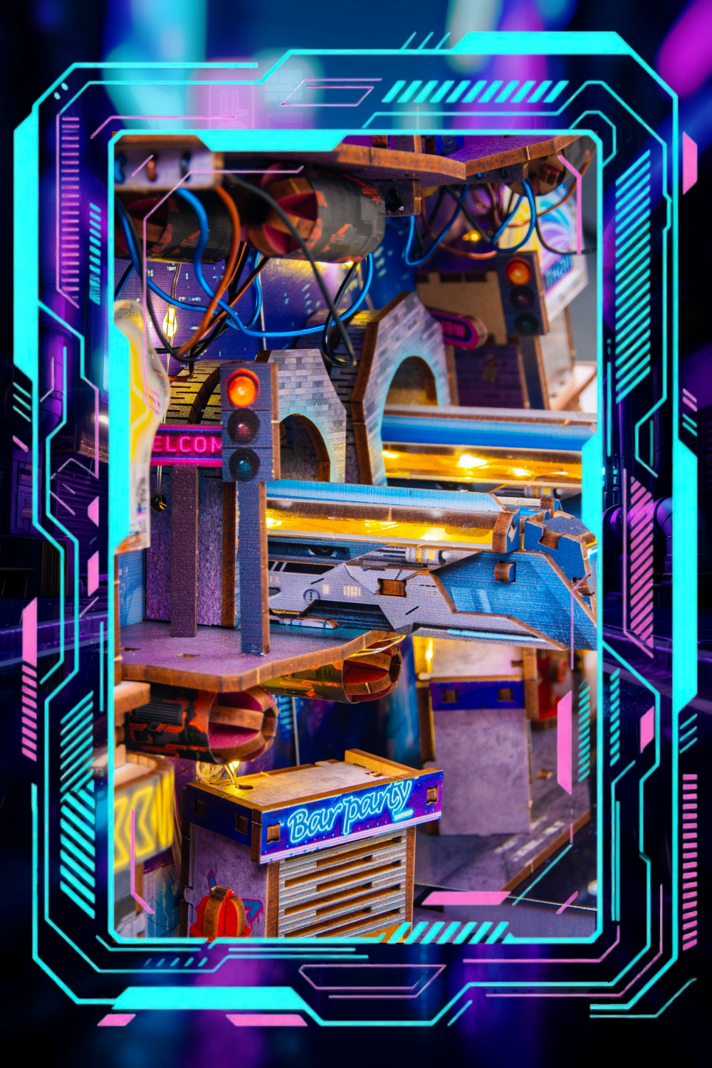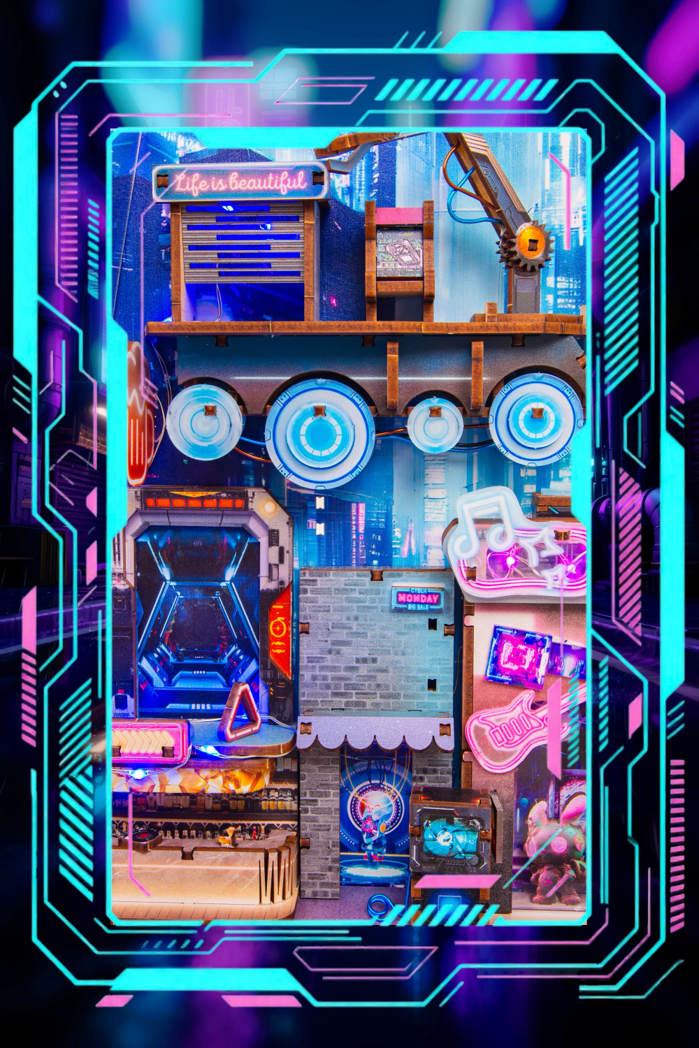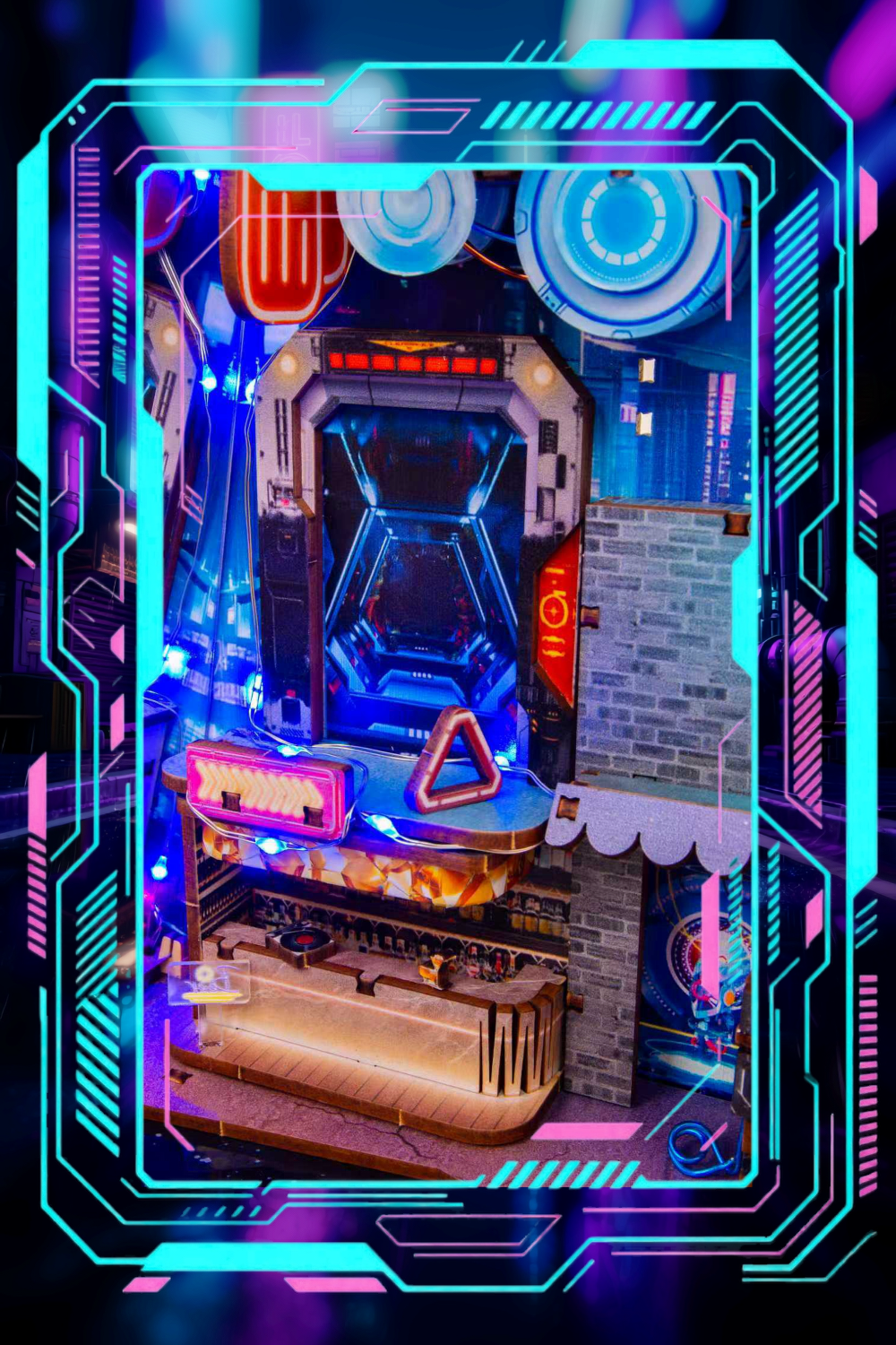 The “Endless Dimensions” 3D Wooden Puzzle Diorama is a futuristic model inspired by the concept of infinite space and parallel universes. Combining gears, mirrors, and layered acrylic with LED lights, it creates an optical illusion of depth that feels both mechanical and otherworldly.