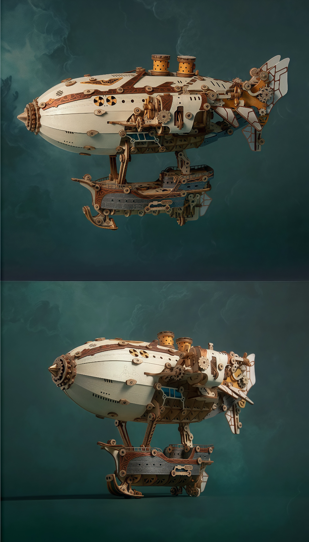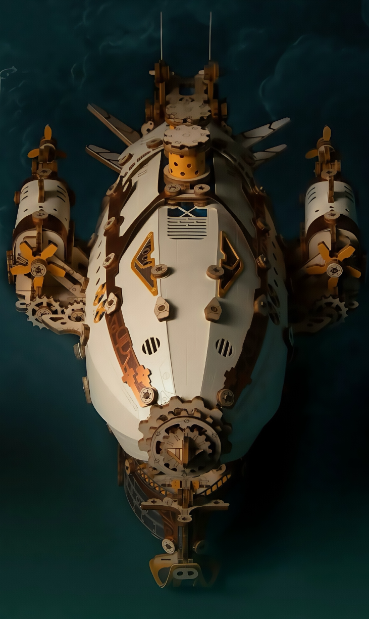 Embark on a fantasy voyage with the WoodooX Fantasy Airship. Featuring intricate internal gears, elegant contours, and detailed flying components, this model evokes the magic of airborne adventures from another world. Each assembly step blends challenge and creativity—a true testament to your craftsmanship and aesthetic taste.